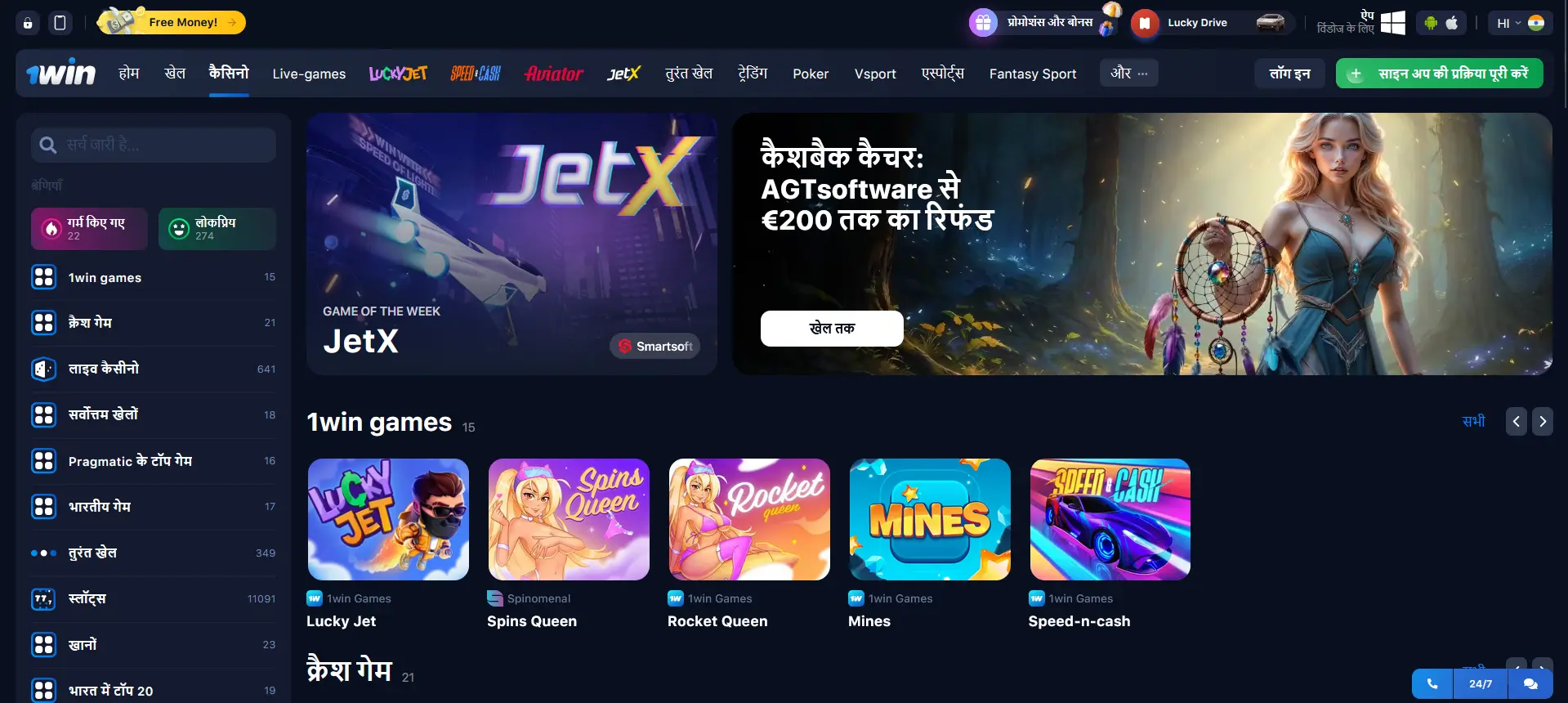 जब आपका खाता फंड हो जाता है, तो आप सीधे खेल पर जा सकते हैं। 1Win कसीनो में स्लॉट मशीनों, टेबल और कार्ड गेम्स, जिसमें रूले, ब्लैकजैक, Poker और बहुत कुछ शामिल हैं, का विशाल चयन है। मुझे व्यक्तिगत रूप से रंगीन ग्राफिक्स, दिलचस्प कथानक और उदार बोनस के साथ Video स्लॉट्स की विस्तृत श्रृंखला सबसे ज्यादा आकर्षित करती है।
